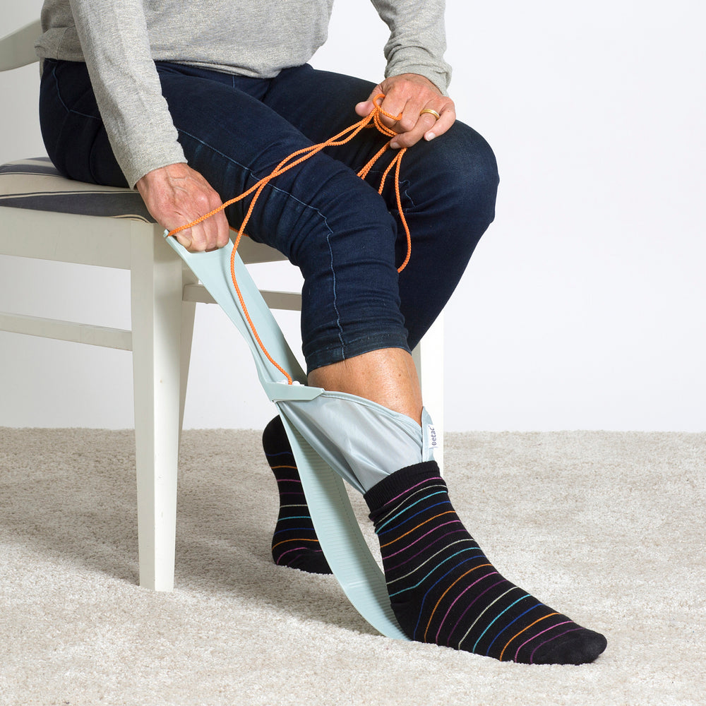 Aankleden moet gemakkelijk zijn. Als pijn of verminderde mobiliteit u beperkt om uw sokken of kousen aan te trekken is de Etac Socky Kousenhulp de ideale oplossing. Er zijn 3 modellen verkrijgbaar met verschillende functies en eenvoudig in gebruik.