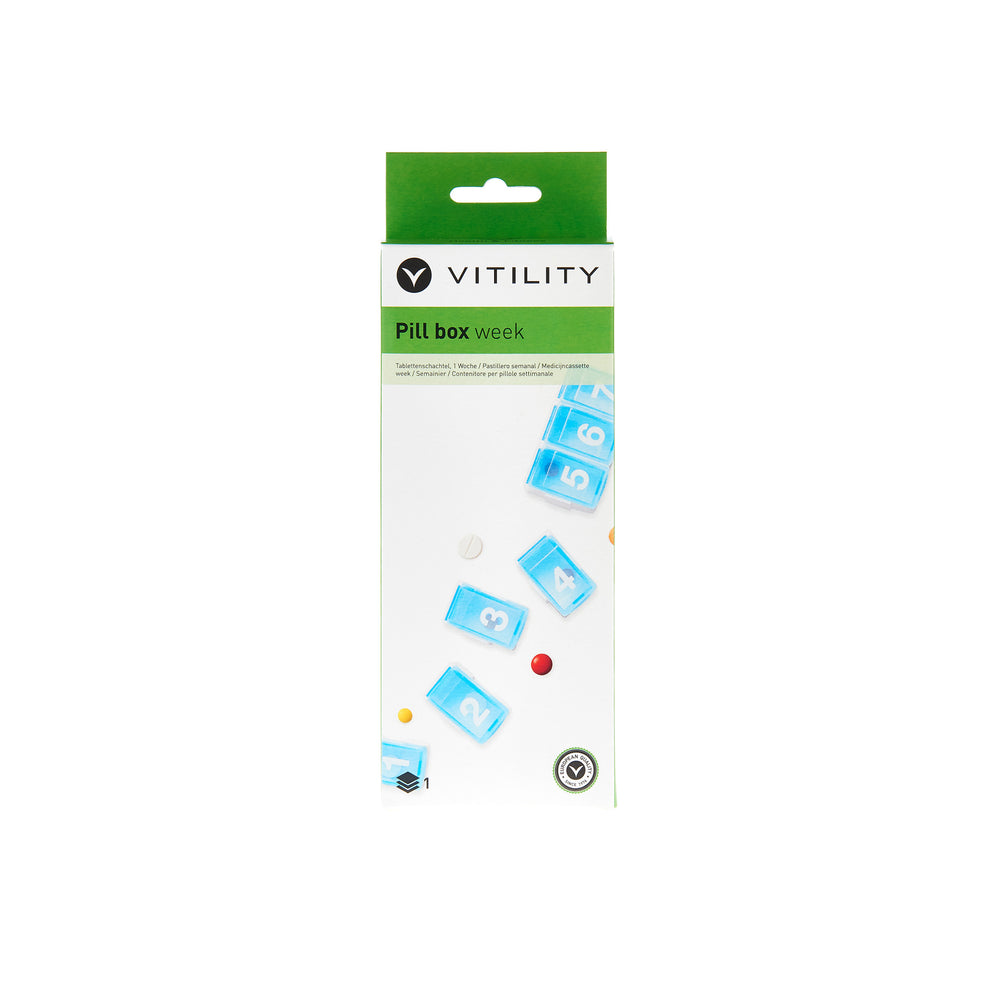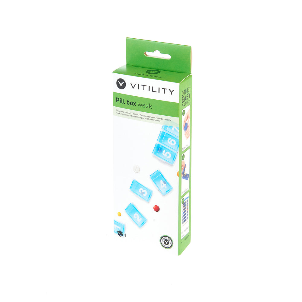 Als je verschillende medicijnen in moet nemen, is het belangrijk dat je een goede medicatie management hebt. Jouw manier van leven bepaald wat de beste medicatie management voor jou is. Tevens is het belangrijk om een medicijndoos te hebben die bij die medicatie management past. Als je veel thuis bent en je moet meerdere malen per dag medicatie innemen, dan is een hele grote medicijndoos met indeling per dag en per week een geschikte oplossing. Maar als je veel onderweg bent en je hoeft niet veel verschillende pillen per dagdeel in te nemen, dan is een kleinere medicijndoos fijner. VITILITY heeft hiervoor een medicijndoos met 7 compartimenten, 1 compartiment per dag. Je kunt dus je medicijninname voor een week daarin doen. Het fijne van deze medicijndoos is dat je de compartimenten los kan halen. Als je op pad gaat hoef je dus maar 1 compartiment mee te nemen. Het compartiment is maar 1 vak. Daarom adviseren wij deze medicijndoos te gebruiken als je niet veel tabletten per dag hoeft in te nemen of de tabletten op hetzelfde tijdstip in kan nemen. Maar mocht je toch veel medicijnen moeten innemen en je hebt een goed geheugen en je weet precies wanneer je wat in moet nemen, kan je deze medicijndoos natuurlijk wel gebruiken. Maar om zoveel mogelijk profijt van je medicatie management te hebben adviseren wij om een medicijndoos te nemen die daar bij past. Het is tevens wel mogelijk om in combinatie met deze medicijndoos, de grotere medicijndoos te gebruiken. Je kan dan bijvoorbeeld die medicijndoos voor thuis gebruiken en daar je voorraad in doen. Als je dan weg gaat haal je de medicijnen eruit en stop je ze in de kleinere medicijndoos.