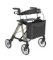 Standaard wordt deze rollator geleverd met een stokhouder en een rug