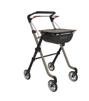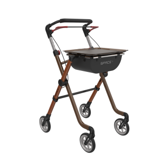 De vorm van het frame maakt het mogelijk om de Space-I binnenhuisrollator dicht bij de stoel, de bank of het bed te zetten en zo te gebruiken als bijzettafel.