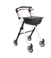 De in het frame geïntegreerde achterwielvork voorkomt dat de rollator blijft steken achter deurposten en meubels. Op deze wijze worden eveneens krassen voorkomen.