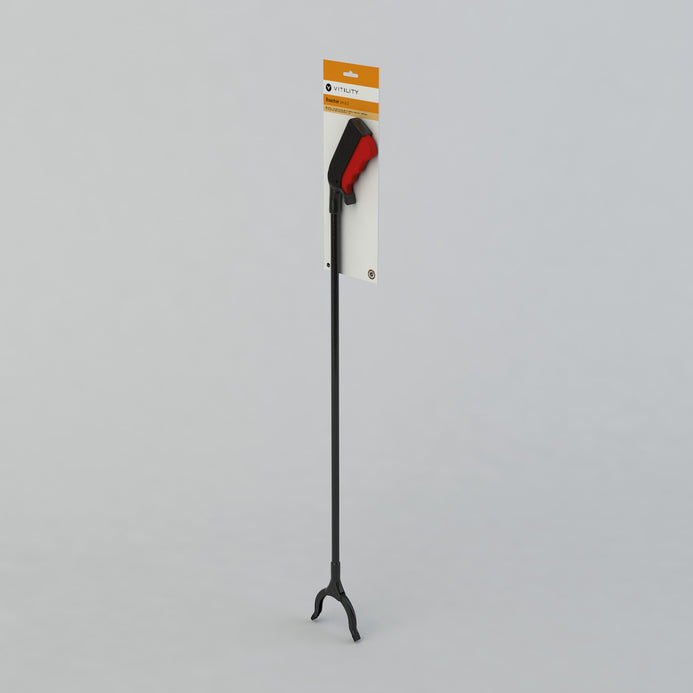 Door lichamelijke ongemakken kan het lastig zijn om te bukken of jezelf uit te strekken om een voorwerp te kunnen pakken. Vooral als je in een rolstoel zit is het haast onmogelijk om iets van de grond te pakken of om iets hoog uit de kast te halen. Hiervoor heeft VITILITY de grijper groot. De grijper is extra lang zodat je meer bereikt hebt om iets te pakken. Doordat de grijper extra lang is kan je makkelijker iets van de grond pakken, maar kan je ook eenvoudiger iets wat hoog in een kast staat grijpen. De grijper is makkelijk met één hand te bedienen, doordat het gedeelte wat je inknijpt de volledige lengte van het handvat heeft. Tevens is dat gedeelte wat je inknijpt ergonomisch gevormd, waardoor het comfortabel in de hand ligt. Doordat de grijper van antislip materiaal is gemaakt blijven de voorwerpen stevig in de grijper zitten. De grijper is geschikt voor het pakken van lichtgewicht voorwerpen. Tevens heeft de grijper bij het handvat een rode knop, als je deze indrukt dan gaat de grijper op slot en dan hoef je het handvat niet in te blijven knijpen om het voorwerp te pakken. Waardoor je eenvoudiger en met minder kracht een voorwerp van de grond kan pakken. Deze grijper is uitermate geschikt voor mensen die een verminderde motoriek in de handen en vingers hebben.